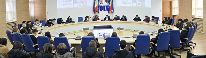 Prima oprire a fost în Sala Europa, locul unde se desfășoară ședințele de plen ale CJ Olt. Elevii au ocupat locurile consilierilor județeni, au stat la prezidiu și au intrat în atmosfera unei ședințe reale, înțelegând cum sunt dezbătute proiectele și cum se conturează direcțiile de dezvoltare ale județului. Experiența a fost completată de explicațiile oferite de reprezentanții instituției despre procedurile administrative și etapele prin care trece un proiect înainte de a fi votat.