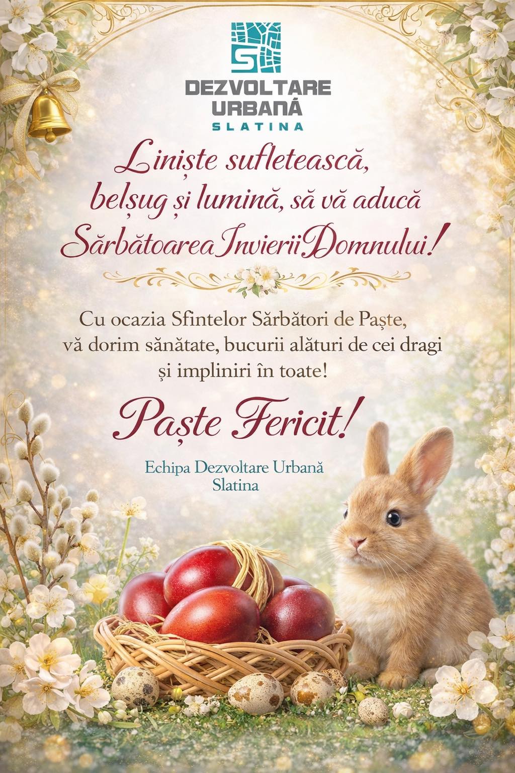 În pragul uneia dintre cele mai luminoase și pline de semnificație sărbători creștine, Sărbătoarea Învierii Domnului, directorul instituției Dezvoltare Urbană Slatina, Andrei Bălan, transmite un mesaj de suflet tuturor cetățenilor.