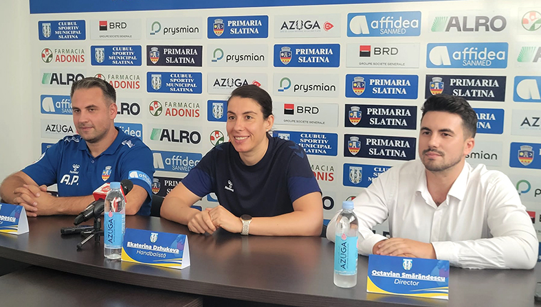 Conducerea și staff-ul tehnic al echipei de handbal feminin CSM Slatina au susținut astăzi, 10 septembrie, o conferință de presă înaintea partidei cu SCM Craiova, din cadrul etapei următoare a Ligii Florilor. La întâlnirea cu presa au participat Octavian Smărăndescu – directorul Clubului Sportiv Municipal Slatina, antrenorul Andrei Popescu și jucătoarea Ekaterina Dzhukeva.