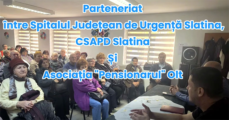 Proiectul prin care medicii Spitalului Județean de Urgență Slatina se întâlnesc, săptămânal, cu vârstnicii din municipiu a devenit deja o tradiție și un exemplu de bune practici la nivel local. Inițiat în urmă cu șase ani, în cadrul parteneriatului dintre CSAPD Slatina, Asociația „Pensionarul” Olt și Spitalul Județean de Urgență Slatina, programul „Mai bine pentru vârstnicii noștri” aduce, în fiecare miercuri, medici specialiști în mijlocul comunității.