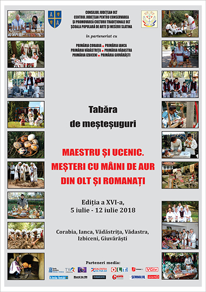 Consiliul Județean prin Centrul Județean pentru Conservarea și Promovarea Culturii Tradiționale Olt și Școala Populară de Arte și Meserii Slatina în parteneriat cu primăriile localităților Corabia, Ianca, Vădăstrița, Vădastra, Izbiceni și Giuvărăști organizează, în perioada 5-12 iunie a.c., cea de-a XVI-a ediție a Taberei de meșteșuguri „Maestru și ucenic”. Tabăra se va desfășura la Corabia, județul Olt, sub genericul „Meșteri cu mâini de aur din Olt și Romanați”.