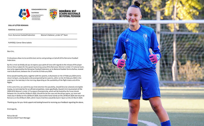 Printre cele 24 de jucătoare selecționate, antrenorul Nina Anca, a convocat-o și pe Elena Izabela Coman, pe postul de portar. Elena Izabela este o tânără ambițioasă din comuna Schitu, sat Catanele, județul Olt care, în prezent, locuiește, cu părinții, în Spania. Pasiunea pentru fotbal a dominat-o de mic copil și, iată acum, vine și răsplata. Izabela evoluează, actualmente, pentru Puntenc Girona, iar înainte de aceasta a jucat fotbal pentru Cornella del Terri.
