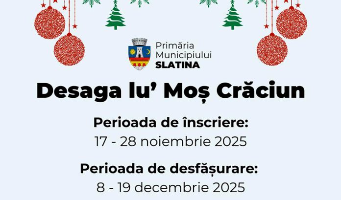 Primăria Municipiului Slatina anunță startul înscrierilor pentru programul „Desaga lu’ Moș Crăciun”, un eveniment dedicat celor mai mici locuitori ai orașului, derulat în preajma sărbătorilor de iarnă. Grădinițele și școlile din municipiu – de la clasa pregătitoare până la clasa a III-a – sunt invitate să participe la un amplu maraton de colinde și momente artistice, create și prezentate de copii.