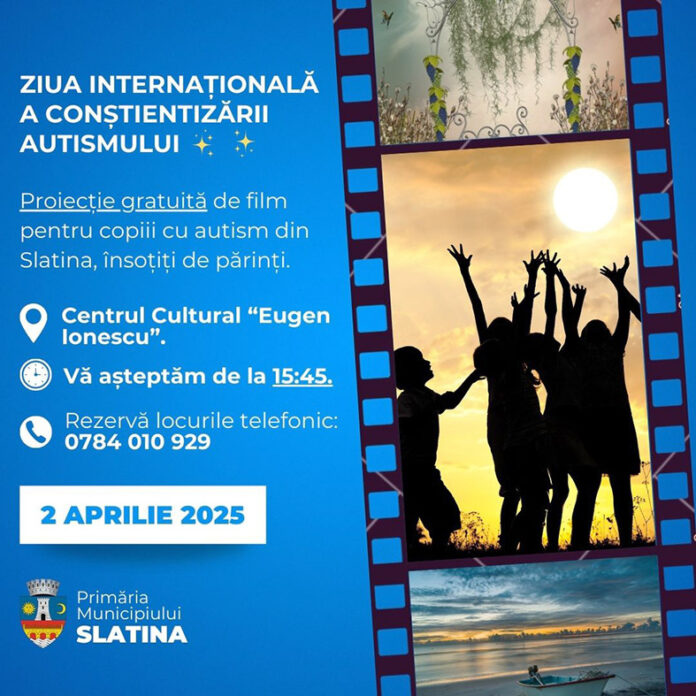 Pentru a marca Ziua Internațională a Conștientizării Autismului, Primăria Municipiului Slatina organizează, mâine, 2 aprilie a.c., o proiecție de film dedicată copiilor cu autism.