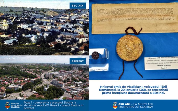 Primăria Municipiului Slatina a transmis astăzi, 20 ianuarie, un mesaj dedicat împlinirii a 658 de ani de la prima atestare documentară a orașului, sub titlul „Slatina veche – orașul de altădată”, prin care readuce în atenția comunității originile și evoluția istorică a municipiului.