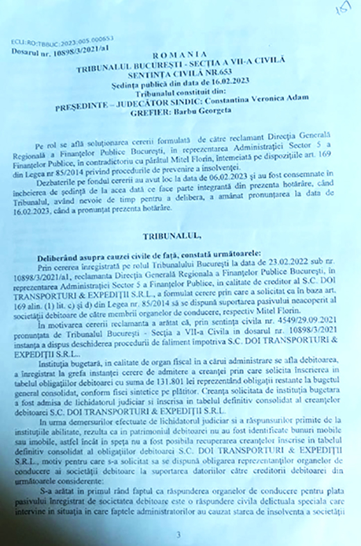 În cazul firmei „Doi Transportatori”, sediul a fost schimbat în Str. Mitropoliei, Sector 3 București — prin declarație falsă, scrisă de altcineva, dar cu numele meu. Fratele meu, care locuiește în Radomirești (Olt), a primit și semnat somațiile ANAF, în timp ce eu nu locuiesc acolo de ani de zile. Astfel, mi s-a blocat dreptul legal de a contesta executările în termenul de 15 zile. Am aflat prea târziu, când totul era deja „făcut”.