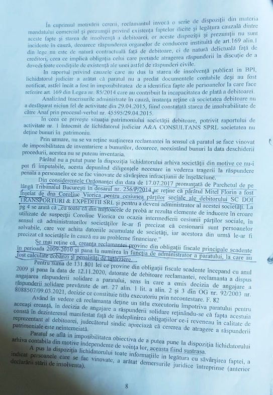 Dosarul penal 3594/P/2011 se află în cercetarea Parchetului de pe lângă Tribunalul București. În acest dosar sunt doar asociat. Nu cunosc conținutul dosarului „Avangarde” și nici al celui „Doi Transportatori” de la ANAF Caracal.