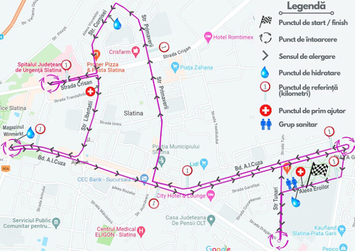 Duminică, 15 mai 2022, în Slatina, este organizat concursul de cros și semimaraton „Slatina City Run”, eveniment organizat de Primăria Municipiului Slatina. Pe parcursul evenimentului, în intervalul orar 10:00-13:00, vor fi instituite restricții de circulație, cu acordul administratorului drumului și avizul Poliției Rutiere. Astfel, va fi restricționat traficul rutier pe traseul: Aleea Eroilor – str. Tunari – bld. A.I. Cuza – str. Primăverii – str. Cornișei – str. Libertății – bld. Nicolae Titulescu (doar zona din fața spitalului).