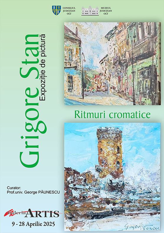 Începând de miercuri, 9 aprilie 2025, Muzeul Județean Olt invită iubitorii de artă la expoziția personală „Ritmuri contemporane”, semnată de artistul plastic Grigore Stan, găzduită de Galeria „Artis” din Slatina.