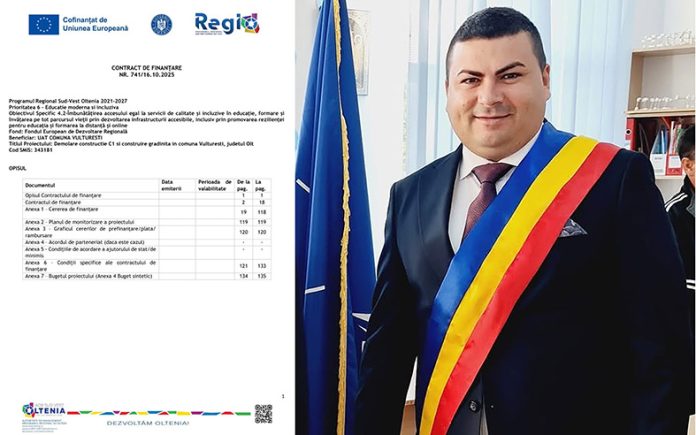 Comuna Vulturești continuă drumul modernizării prin investiții europene solide. Primarul Marius Treanță a anunțat, cu bucurie și responsabilitate, semnarea contractului de finanțare pentru construirea unei grădinițe cu program prelungit, un proiect în valoare de 7 milioane de lei, fonduri nerambursabile, care va schimba fundamental viața educațională a micuților din localitate.
